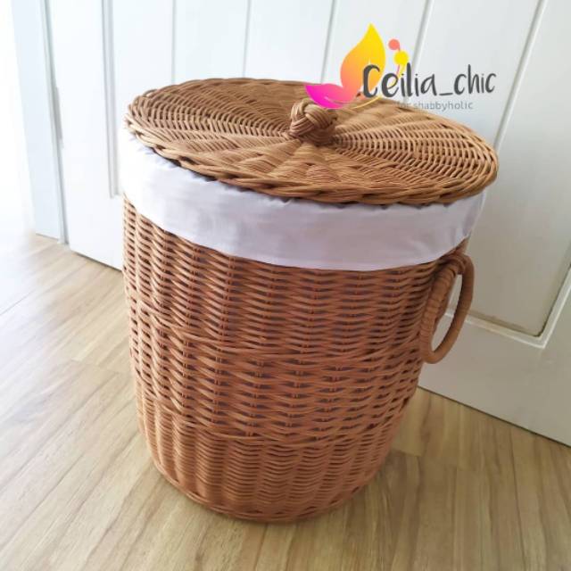 keranjang anyaman rotan laundry basket homedecor Sumber : shopee.co.id